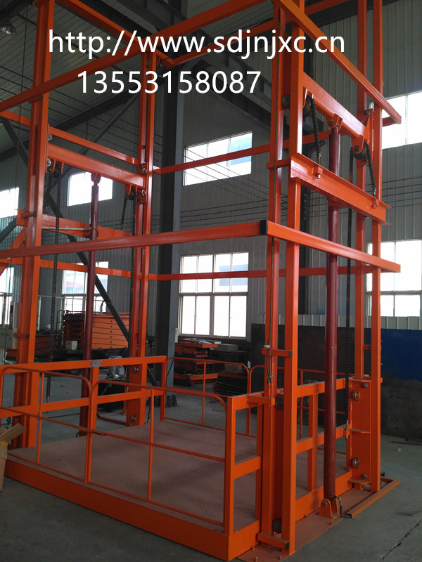導(dǎo)軌式液壓升降平臺是一種非剪叉式液壓升降平臺,廣泛應(yīng)用于工礦企業(yè)代替電梯提升貨物,具有結(jié)構(gòu)簡單、載重量大、使用壽命長、維護(hù)方便、安全使用等特點。尤其適用于帶井道地下無法挖地基的場所。