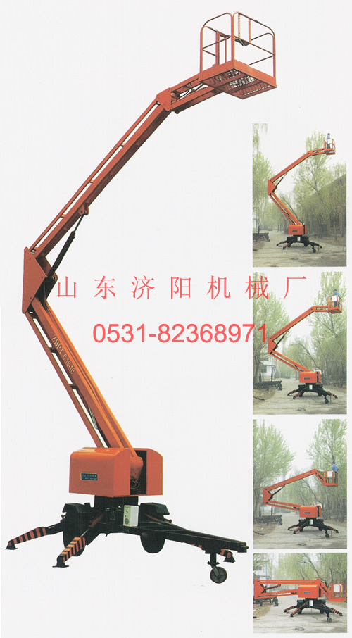 該系列升降機(jī)主要用于室外高空作業(yè)。折臂結(jié)構(gòu)緊湊,采用新型優(yōu)質(zhì)型鋼,強(qiáng)度高、重量輕、架設(shè)速度快,具有自動液壓支腿,工作臺既可升高又可水平延伸,還可旋轉(zhuǎn)??刹捎媒涣麟娫磫樱子诳缭秸系K物到達(dá)工作位置,是理想的登高作業(yè)設(shè)備。該系列升降機(jī)廣泛用于市政、電力、路燈、公路、碼頭、廣告、廠礦車間大范圍作業(yè)。