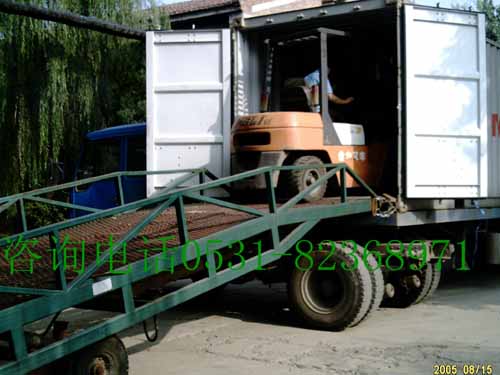 移動(dòng)式液壓裝卸過(guò)橋廣泛用于無(wú)裝卸設(shè)備的貨臺(tái)及流動(dòng)裝卸場(chǎng)所,是與叉車(chē)配合使用的貨物裝卸輔助設(shè)備。借助該設(shè)備,叉車(chē)能直接駛?cè)肫?chē)集裝箱內(nèi)部進(jìn)行批量裝卸作業(yè)。只需單人操作,不需動(dòng)力電源。實(shí)現(xiàn)貨物的安全快速裝卸,既可減輕勞動(dòng)速度,又能成倍提高裝卸作業(yè)效率,加快物料流通速度,獲取更大經(jīng)濟(jì)效益。